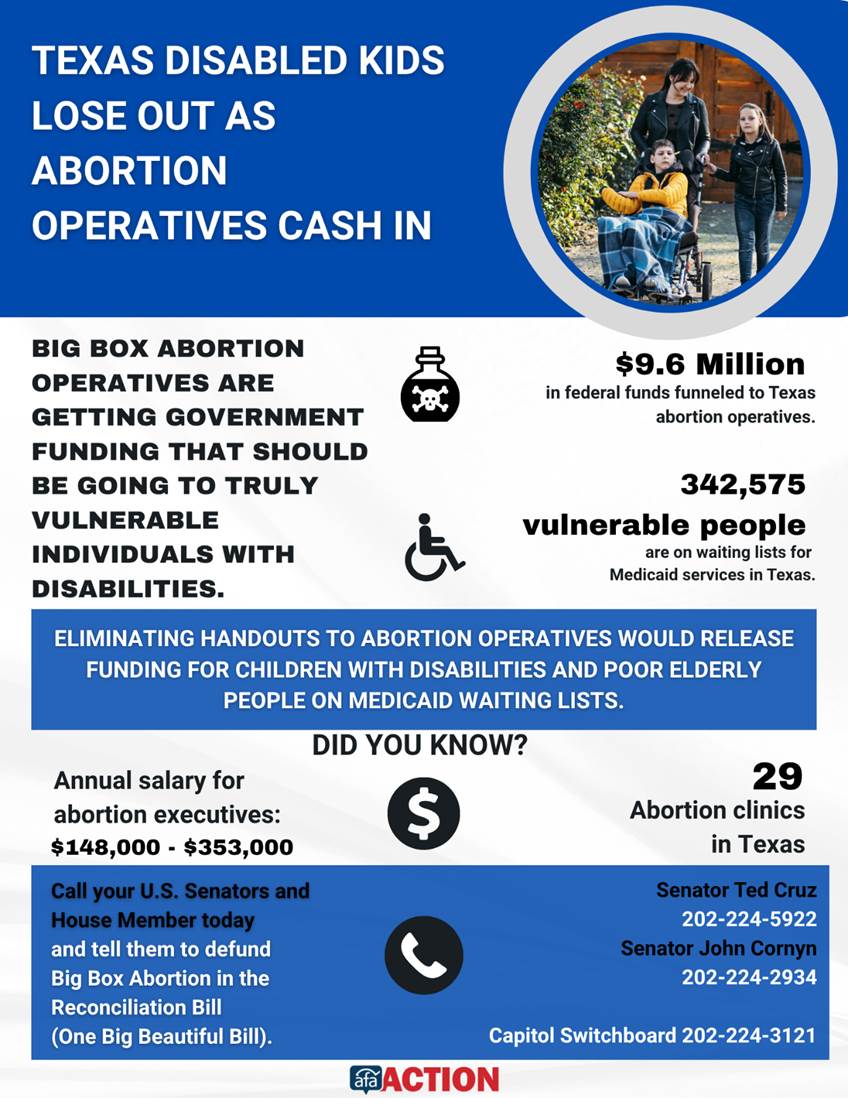 Did you know that abortion providers in Texas are getting government healthcare funding that could be helping disabled kids instead?